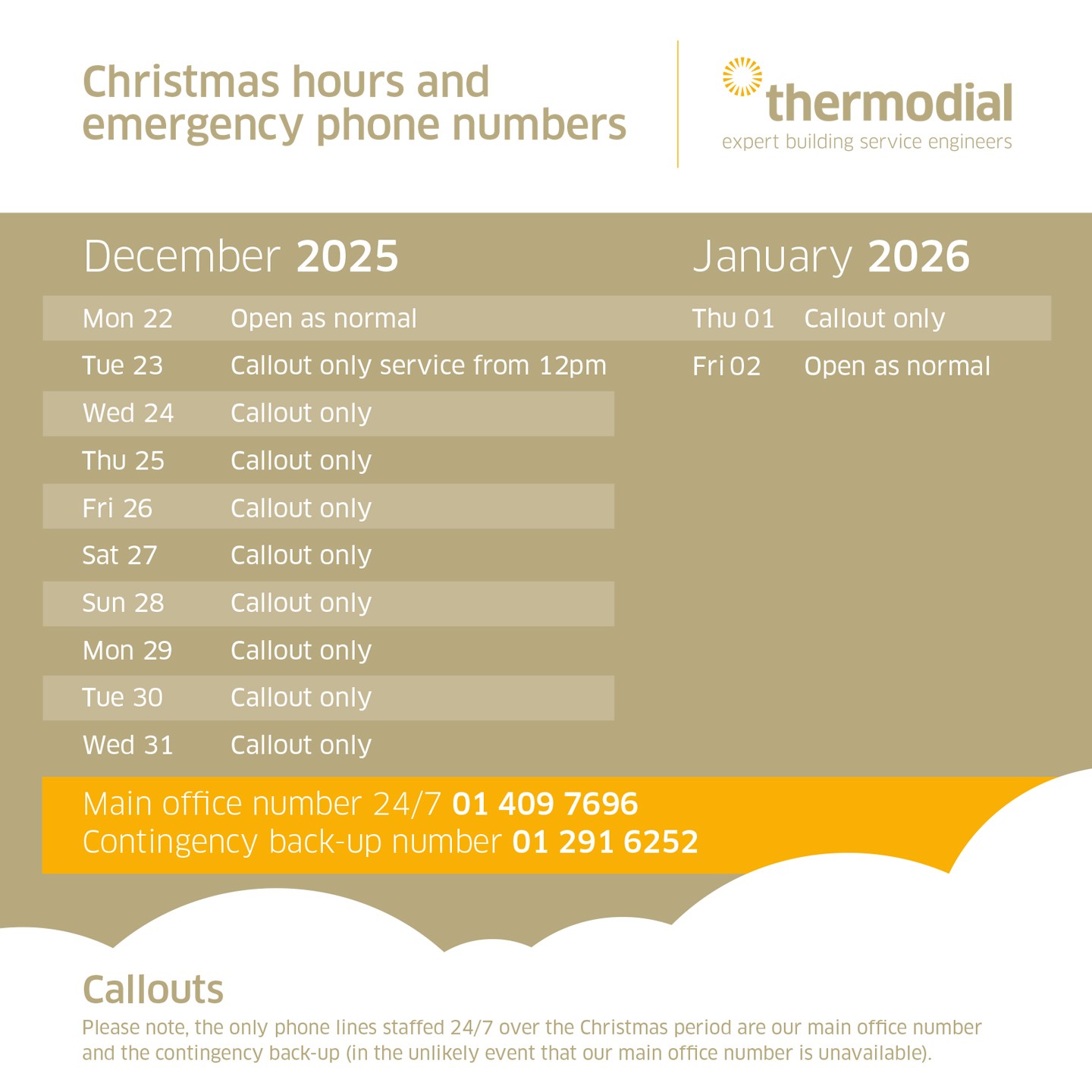 However, our office will close from 12 noon on Tuesday 23 December and a callout only service will remain in place from this time until Friday 02 January 2026, when normal hours resume.